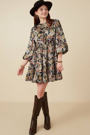 Paisley Print Fabric * Round Neck * Bubble Sleeves Measurements: Size Length Chest Waist Small 35" 18" 13.5" Medium 35.75" 19" 14.25" Large 36.5" 20" 15" 1XL 39" 24" 17.5" 2XL 39.75" 26" 19" 3XL 40.5" 28" 20.5" The measurements in the chart above reflect the garment laying flat. For body measurements please visit our Size Guide. Model Stats: Material & Care: * 100% Polyester * Hand Wash Cold * Hang Dry